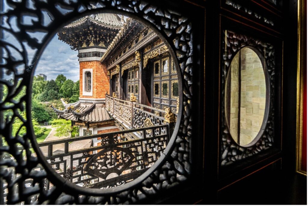 French architect Alexandre Marcel designed both the China House and the Japanese Tower and oversaw their construction in the landscape surrounding the royal estate of Laeken. Both buildings were inspired by the “Tour du Monde” (Around the World) pavilion at the 1900 Universal Exhibition in Paris and commissioned by King Leopold II as a testament to the good relations between Belgium and Asia. The construction of China House began in 1903 and was completed in 1910, one year after the king’s death. In the 1990s – 2000th, it was completely restored, but despite this restoration, China House had to close in 2013 due to instability. In 2019, at the initiative of the Brussels-Capital Region, it became a listed building and in January 2025, the Council of Ministers of the Belgian federal government ratified the creation of a non-profit association in charge of the revitalization of the building and its annexes under the name of China House and the Silk Road Countries.