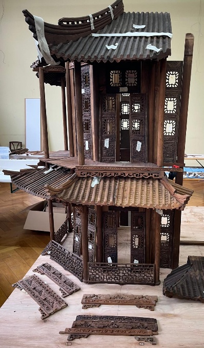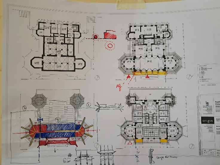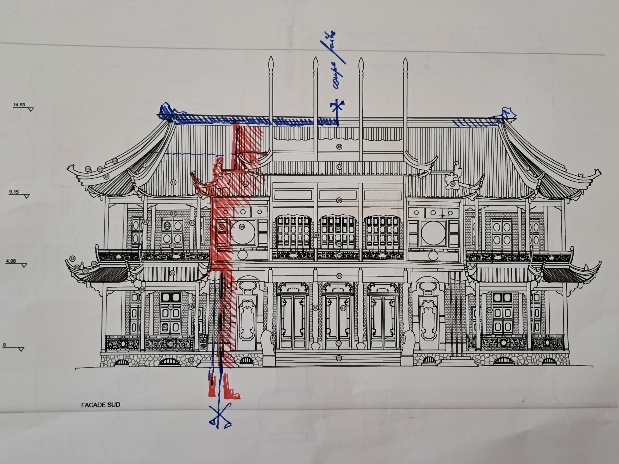 Le mardi 25 mars, nous recevons la visite de l’architecte Nicolas Godelet, afin d’avancer sur la structure de la partie centrale de la maquette. Nous évoquons le rôle du Frère Beck et de ses connaissances en architecture chinoises, ainsi que la structure en PAILOU du bâtiment (pai : enseigne et Lou : bâtiment). Cette structure est beaucoup utilisée en Chine pour des portiques, plus rarement pour des bâtiments. Nous décidons donc de scinder la maquette pour son transport, en respectant cette structure.