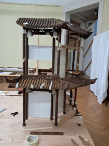Nous avons besoin de pièces de structure. Il nous en manque et celles que nous avons sont tordues. L’atelier menuiserie du cinquantenaire nous les fabrique.