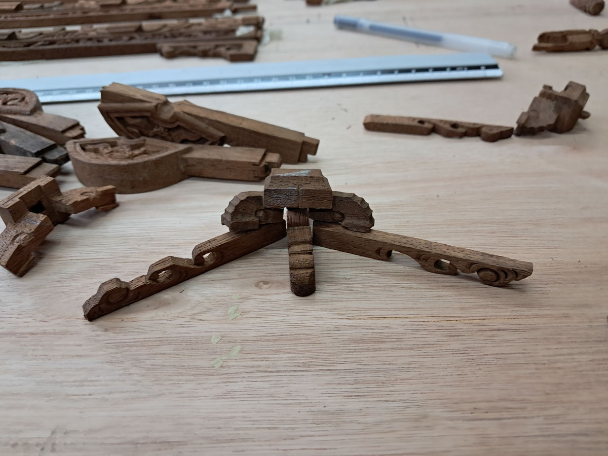 Nous avons besoin de pièces de structure. Il nous en manque et celles que nous avons sont tordues. L’atelier menuiserie du cinquantenaire nous les fabrique.