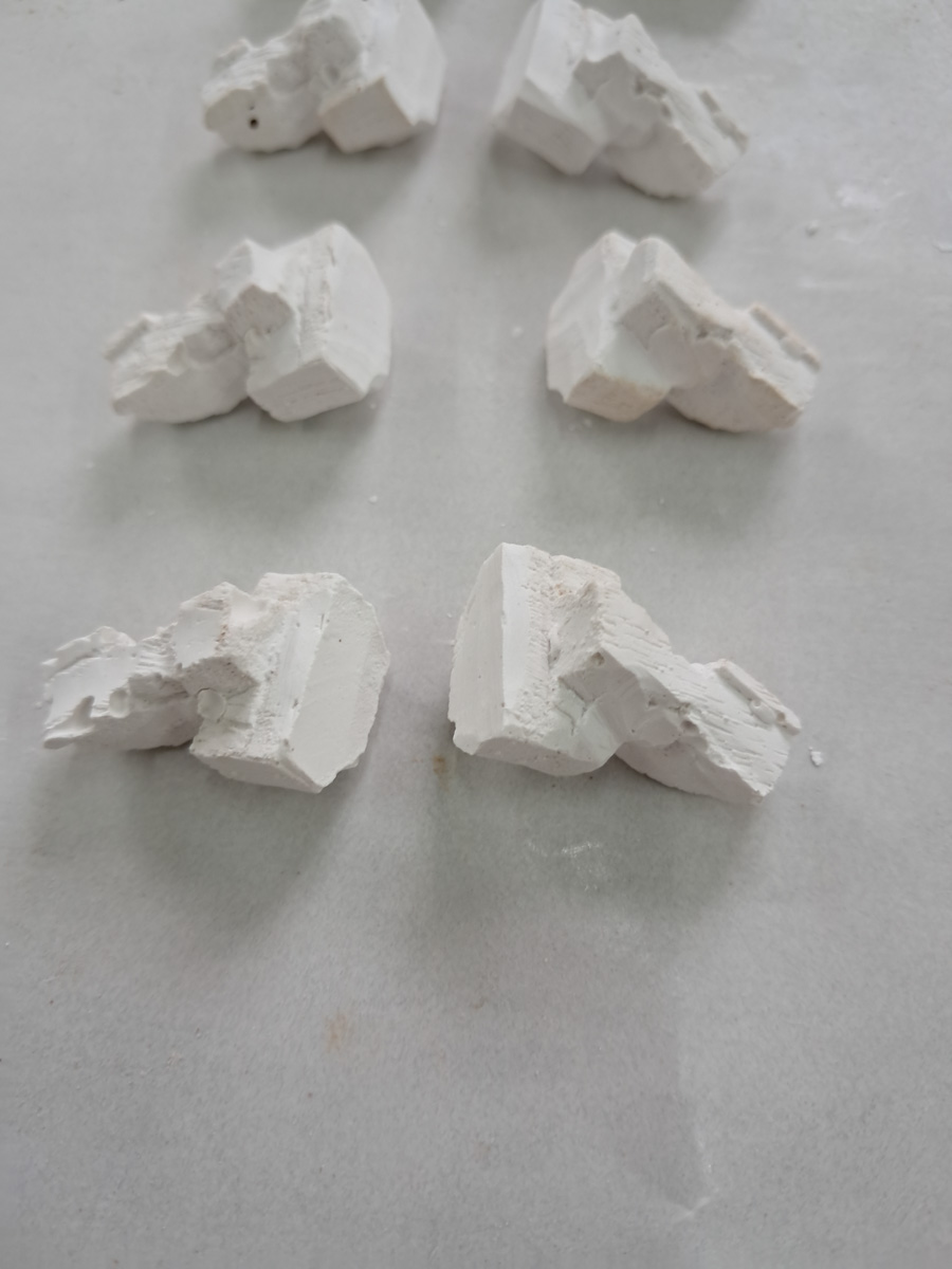 Nous continuons également le moulage en plâtre-porcelaine des petits éléments types « dogons » et languettes ornementales.