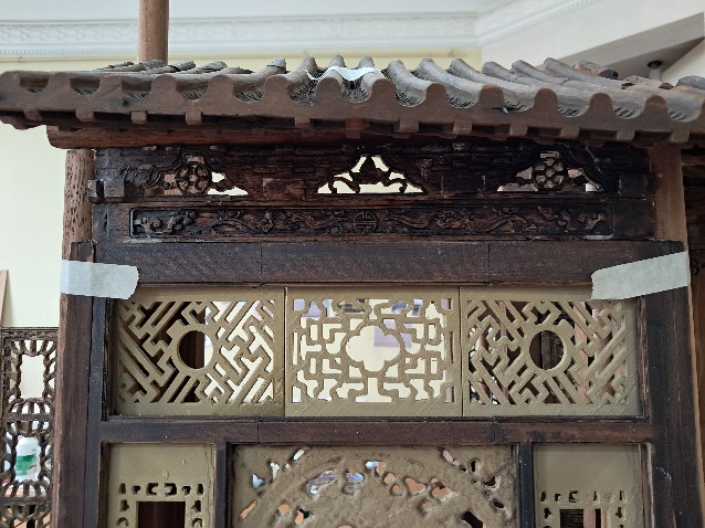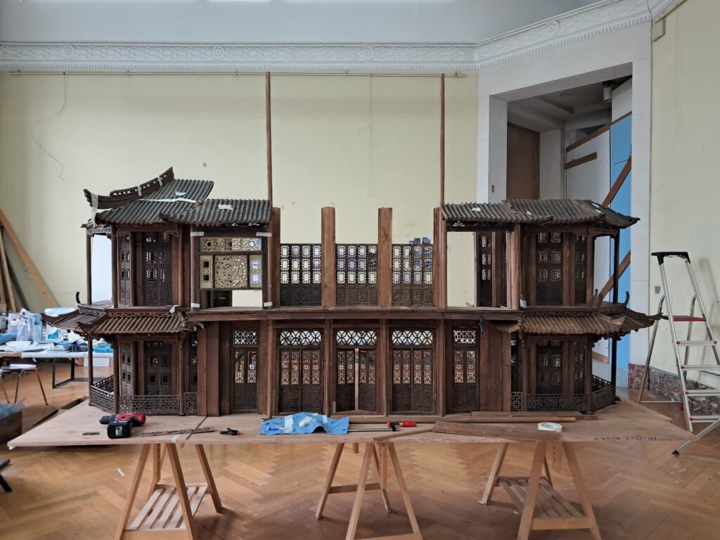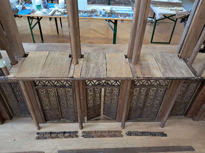 Nous moulons, ajustons, teintons et accrochons les frises de façade de la loggia ; nous plaçons provisoirement les toits des loggias.