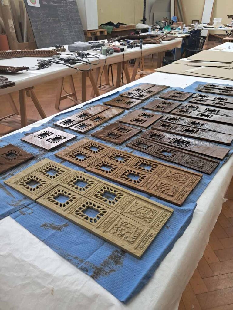 Gwenaëlle sends us photos of her trials for the central doors on the first floor; this appears suitable.