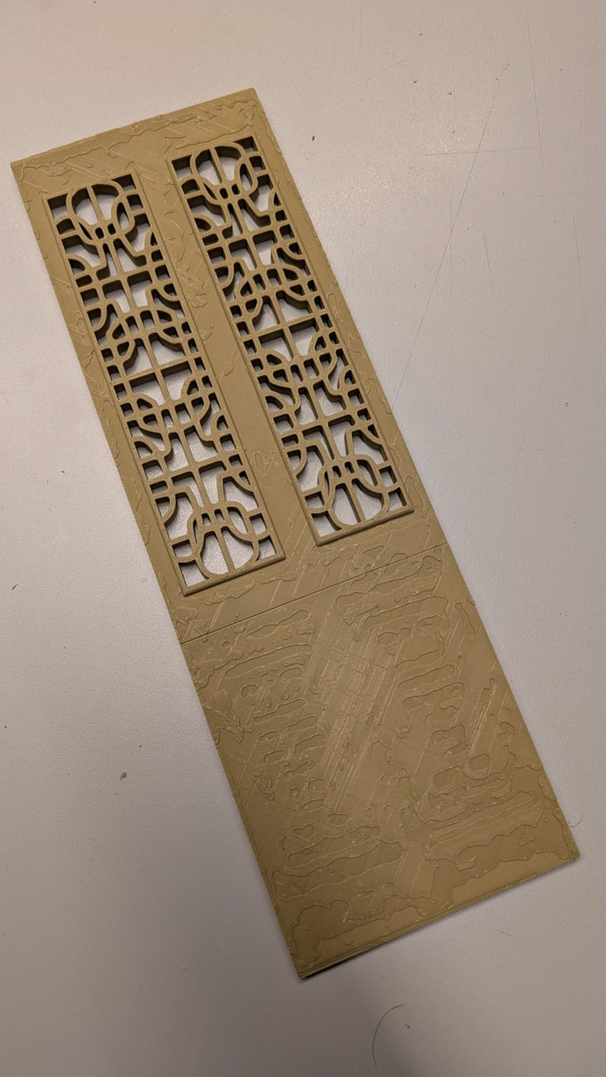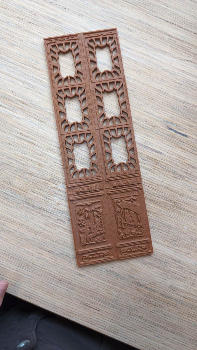 Gwenaëlle sends us photos of her trials for the central doors on the first floor; this appears suitable.
