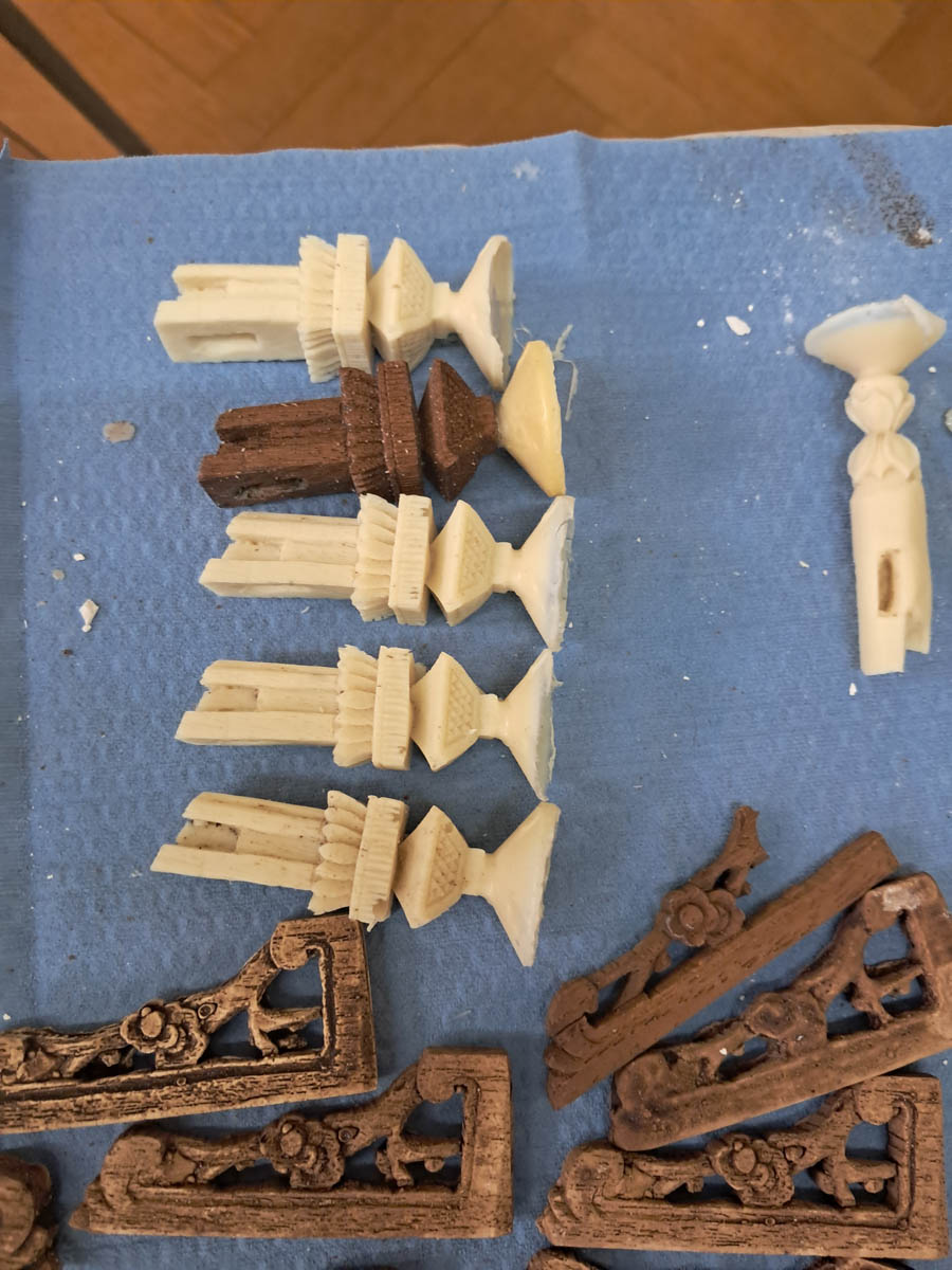 We receive the complex molds that we had commissioned from a molding professional, and we begin casting them in resin.