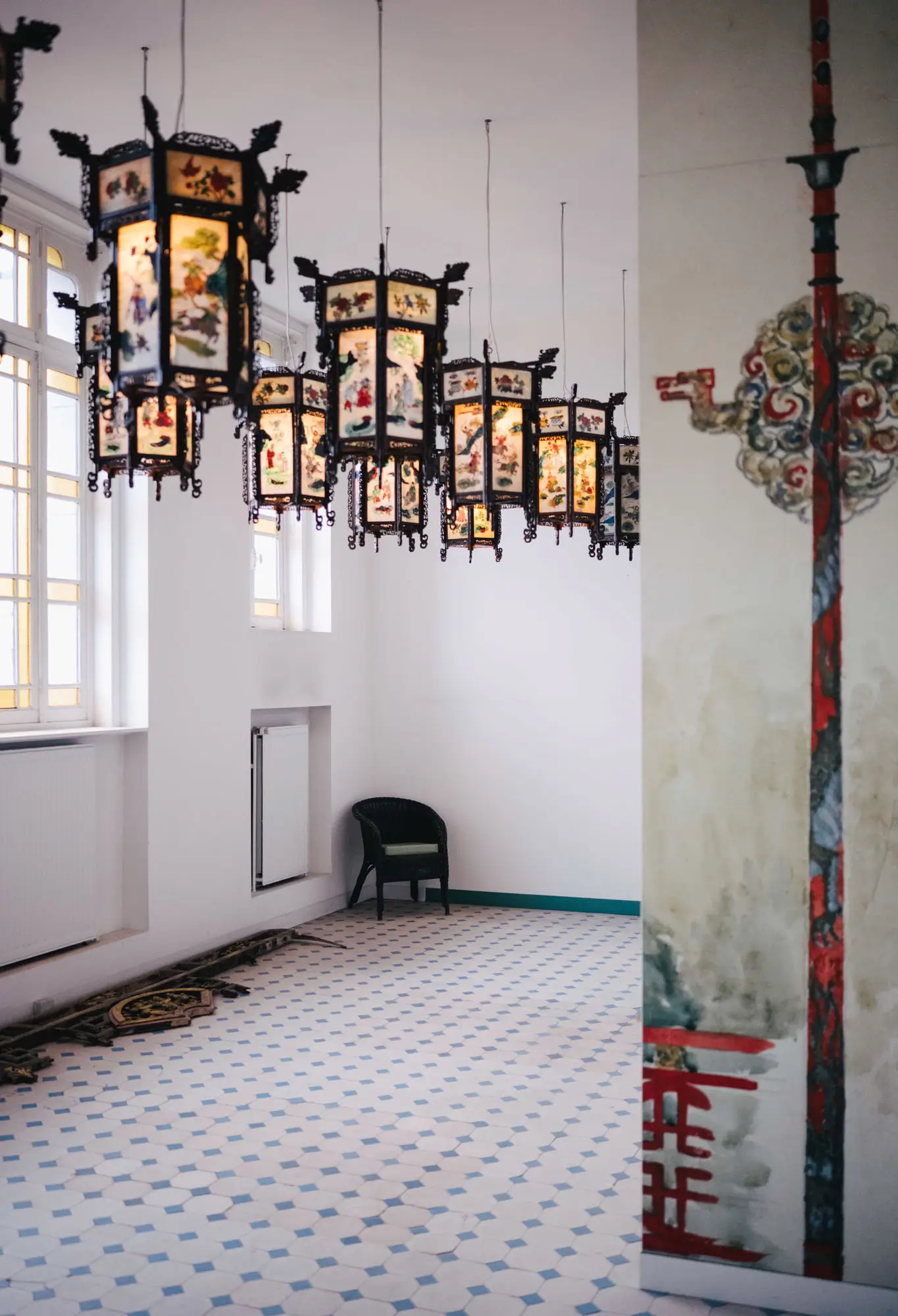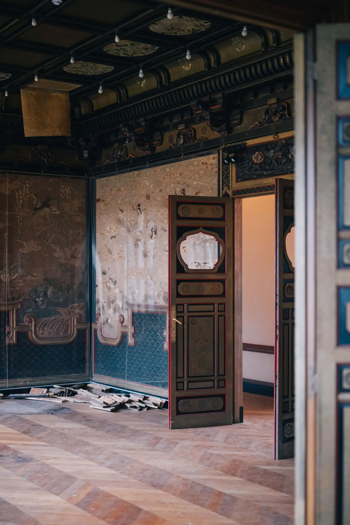 After the Universal Exhibition in Paris in 1900, when architect Alexandre Marcel was commissioned to design and build the China House, its annex and the Japanese Tower, he had craftsmen from Shanghai build a 1/10 scale model of the palace. This wooden model, which features numerous carved details, was luckily found in the annex and stored for a long time at the Museum of Art and History in pieces. Thanks to the collaboration of the Museum of Art and History, the King Baudouin Foundation and the Jonckheere Fund, the restoration of this model began in November 2024 and was completed in July 2025. The model is on display at the Museum of Art and History from 14 October 2025.